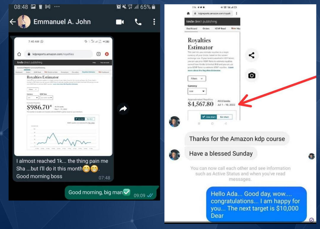 AMAZON KDP (fully, Amazon Kindle Direct Publishing) is a self-publishing platform owned by World’s richest man Jeff Bezos. It is part of his E-commerce Company, Amazon.Now, It is called Self-publishing because – unlike normal publishing – it is done by the Authors FOR FREE.you don’t have to pay Amazon to publish your book either as eBook or paperback, even hardcover. All you do is Upload your book, set price, and Amazon displays your book to its Millions of audience.why would Amazon do it for free? How does Amazon earn from it?Simple, as your book sells, you give Amazon 30% of every copy of eBook sold, and 40% of paperback sold minus printing cost.So, let’s say your book sells for 4.99 dollars. If you make 1 sale, Amazon takes 30% and you get 3.49 dollars. Now, imagine that you sell 100 copies of that 1 book in a month… HOW MUCH?3.49 x 100 = $349 from 1 book! 1 book Grace.Convert to naira at the rate of 710 naira/dollar. That is How much in Naira. IT IS POSSIBLE, even more than that.